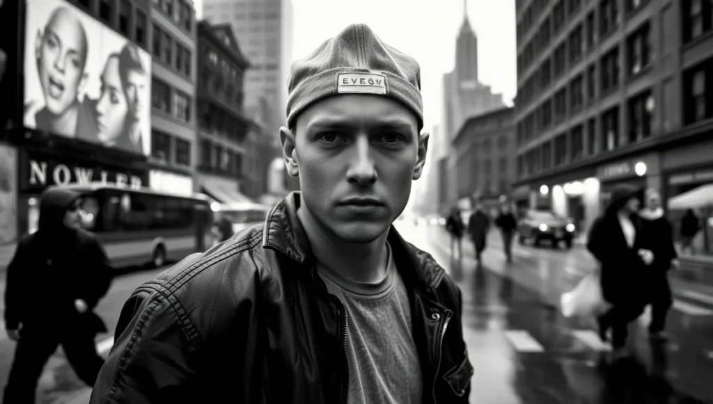 این چالشها نه تنها به عنوان یک مانع، بلکه به عنوان یک کاتالیزور برای رشد هنری امینم عمل کرد. او یاد گرفت که چگونه از تمسخرها و انتقادات به نفع خود استفاده کند. شخصیت “Slim Shady” که بعدها خلق شد، تا حدودی پاسخی به همین تبعیضها بود. Slim Shady شخصیتی بود که از هیچ قانونی پیروی نمیکرد، به هیچ کس احترام نمیگذاشت و از هر چیزی که جامعه آن را “مقدس” میپنداشت، انتقاد میکرد. این شخصیت به امینم اجازه داد تا خشم و ناامیدی خود را از وضعیت موجود، از جمله تبعیض نژادی، بیان کند. او با این شخصیت، به نوعی انتقام خود را از کسانی گرفت که او را به خاطر رنگ پوستش نادیده میگرفتند. او با طنز سیاه و کنایههای تند، به جامعهای حمله میکرد که به او فرصت ابراز وجود نمیداد.