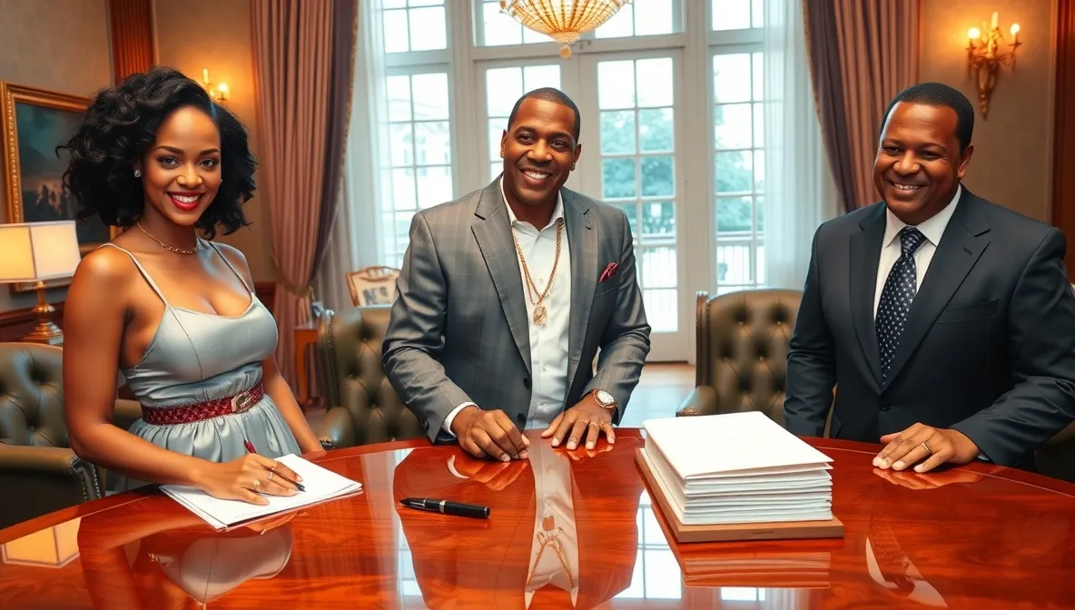 بخش مهم داستان کشف ریحانا، زمانی است که این دموها به دست “جی-زی” (Jay-Z)، رپر و مدیر عامل وقت Def Jam Recordings رسید. در آن زمان، جی-زی به دنبال استعدادهای جدید بود و از طریق یکی از تهیهکنندگان خود، دموهای ریحانا را دریافت کرد. وقتی جی-زی دمو “Pon de Replay” را شنید، بلافاصله از ریحانا خواست تا به همراه راجرز و استورکن، به دفتر Def Jam در نیویورک بیاید و برای او تست خوانندگی بدهد. ریحانا در سن ۱۷ سالگی، در یک جلسه استماع نفسگیر و پراسترس، برای جی-زی و ال.ای. رید، مدیرعامل وقت گروه موسیقی یونیورسال، اجرای زنده انجام داد. جی-زی در آن جلسه، ریحانا را به مدت چند ساعت در دفترش نگه داشت و به او پیشنهاد یک قرارداد ضبط داد که در همان روز امضا شد. او به ریحانا گفت: “تنها راه خروج از این اتاق، امضای قرارداد است.” این لحظه سرنوشتساز، مسیر زندگی ریحانا را برای همیشه تغییر داد.